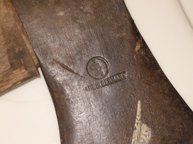 i was at the gun show this weekend. as i was walking along i looked into a case on a table and look what i found. a 2 hawks trapper hatchet. it was practically new. since i got it i have already rubbed some of the finish off. whacking through oak logs will do that. one neat feature it has is its stamped with the pathfinder school logo. in my brief research, only tomahawk style tools come up. i will need to do more research to see what is going on.